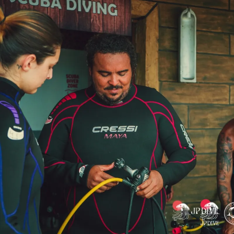 Desde a correta respiração subaquática até o controle de flutuabilidade, os instrutores da JP Dive ensinam de forma clara e didática as habilidades necessárias para explorar o ambiente marinho com segurança e confiança.