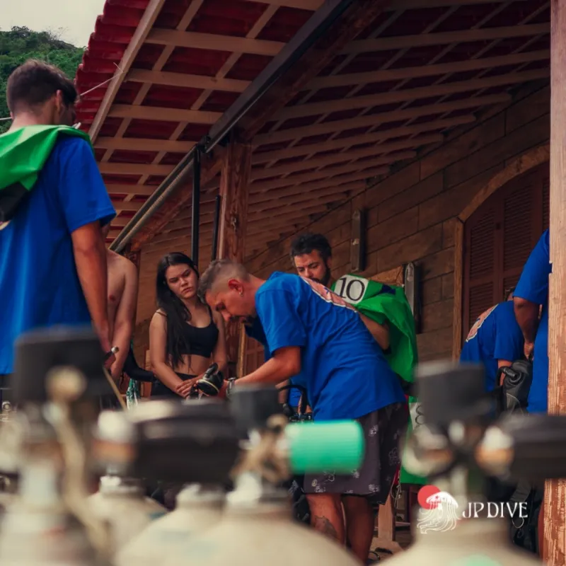 A JP Dive, empresa especializada em serviços de mergulho, oferece um suporte completo aos alunos, assegurando que tenham todo o equipamento necessário para o curso.